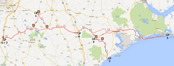 Riders must follow and complete the approved route. This route goes through several small towns in central North Carolina traveling along mostly low traffic roads. There may be some sections where traffic is high, so please ride carefully and safely at all times. The intermediate controls are where stores allow you to refuel with some basic supplies. There are also some other stores along the route where you may be able to stop and get limited nutritional supplies.